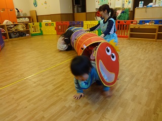 1.5メートル位のトンネルを3つ つなげて長〜いトンネルを作りました
