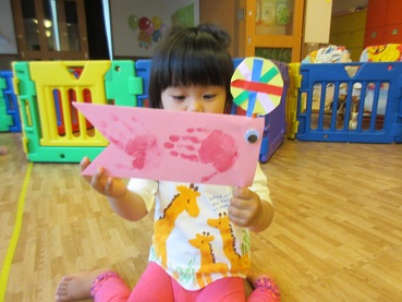 2nd スタンプ こいのぼりアート 2015/05/01 もうすぐ「子どもの日」ですね 手型スタンプでこいのぼり制作をしました みんなどんなこいのぼりになるのか ドキドキ そぉーっと手をはなして、自分のかわいい手型ににっこりの子どもたちでした Posted by weepeeみもみ